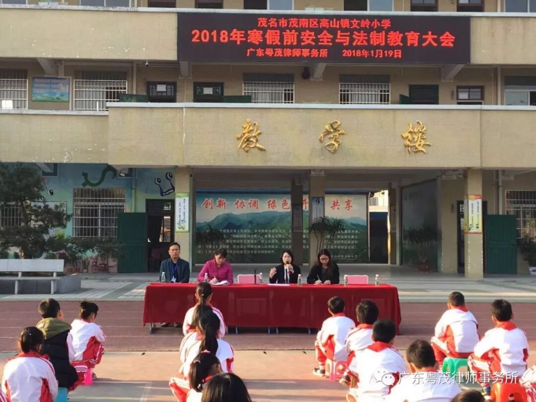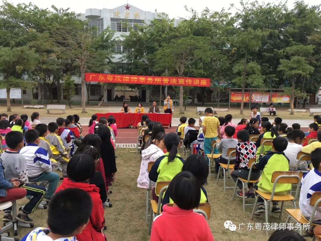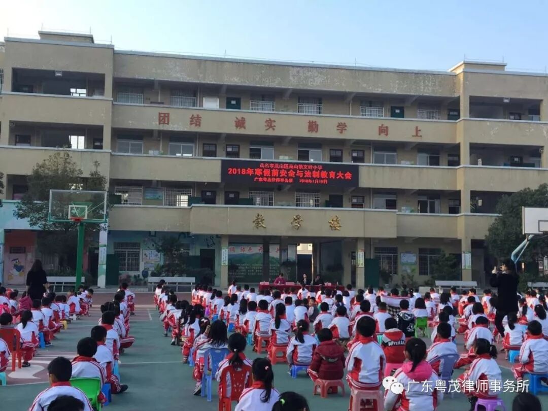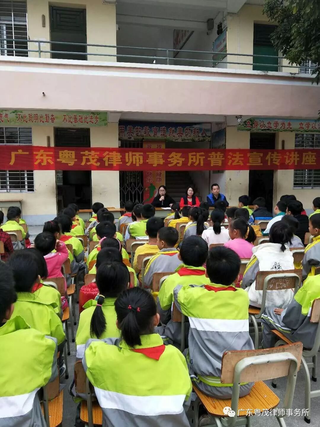 黄国凤、潘丽红律师作为茂名市茂南区高山镇中心学校的法律顾问,为关爱未成年人健康成长,提高未成年人的法律意识,更好的维护未成年人的合法权益。2018年1月份,在小学生放寒假前,积极联系高山镇中心学校管辖下的三所小学(文岭小学、黄竹小学、群德小学)开展普法宣传讲座。