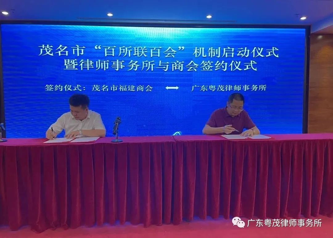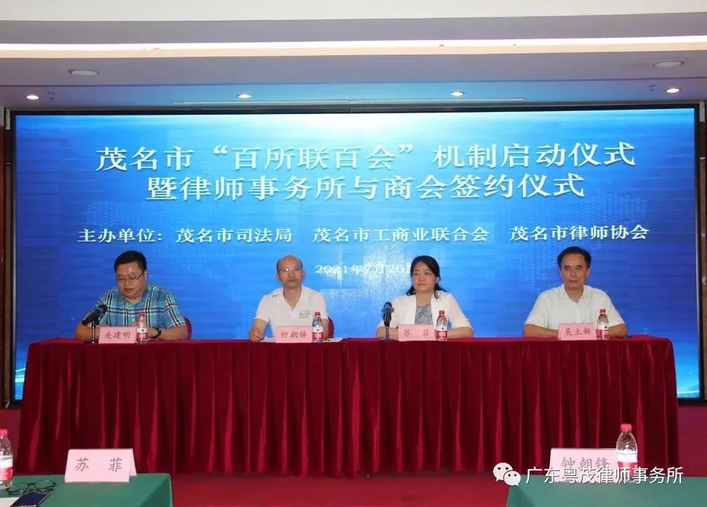 2021年7月26日下午,为共同构建法治化营商环境,助力民营企业健康发展,我所梁文光主任、李龙周主任、梁中梓副主任应邀出席参加了由茂名市司法局、茂名市工商业联合会、茂名市律师协会联合举行的茂名市“百所联百会”机制启动仪式暨律师事务所与商会签约仪式。